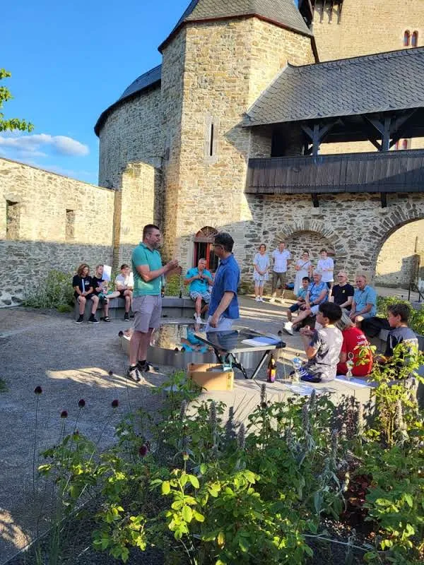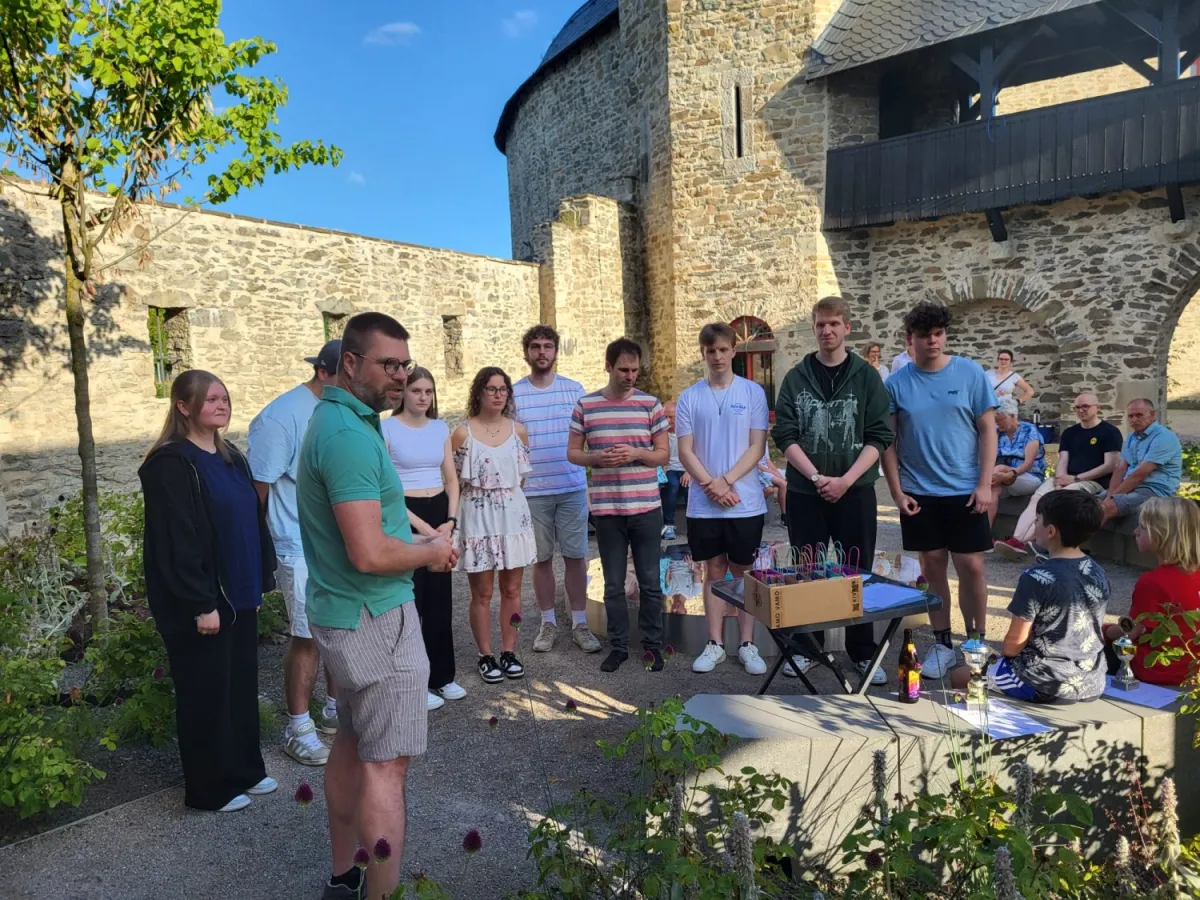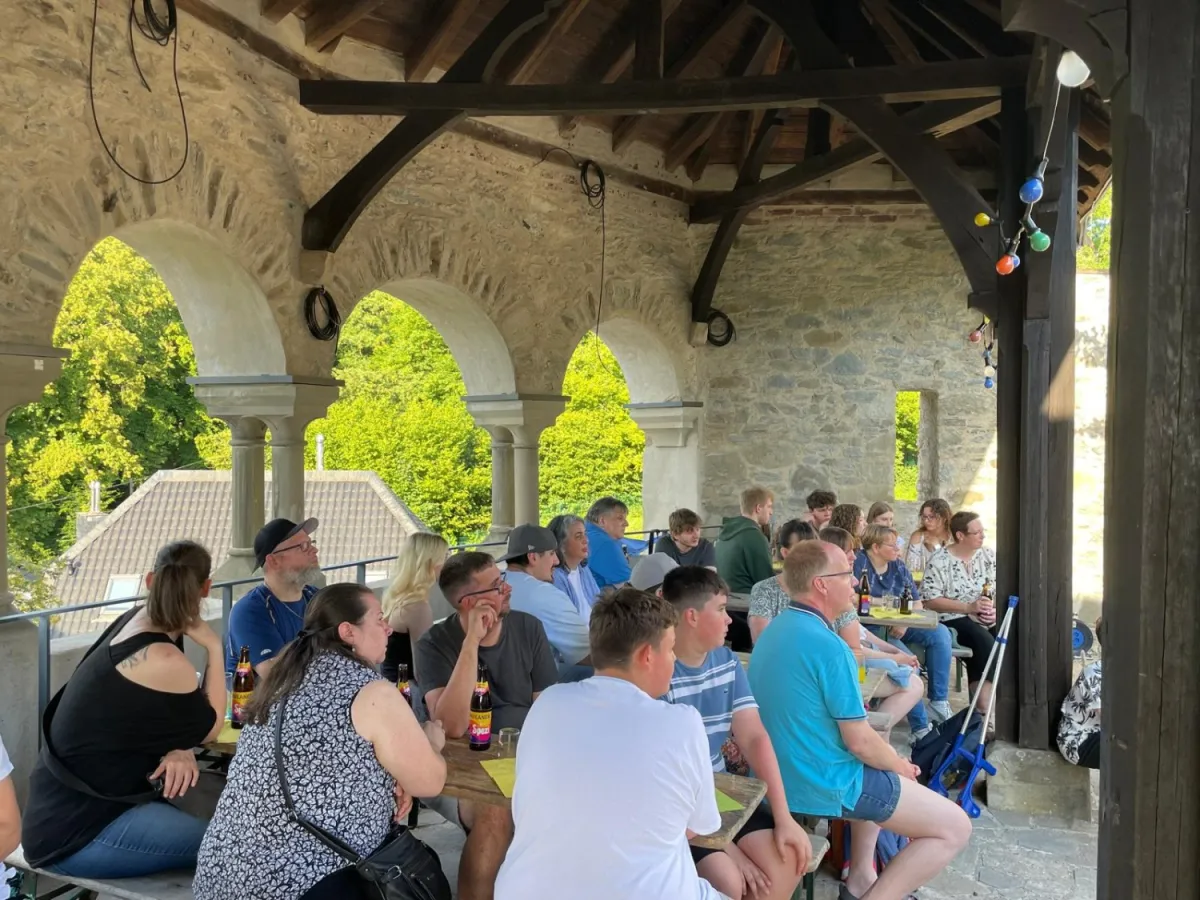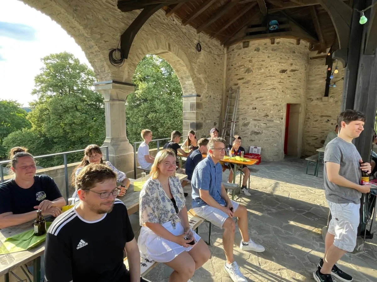 Pünktlich zu diesem Jubiläum konnten wir endlich wieder auf der Nordterrasse von Schloss Burg feiern, welche sich nach den Umbauarbeiten der letzten Jahre in neuem Glanz zeigte.