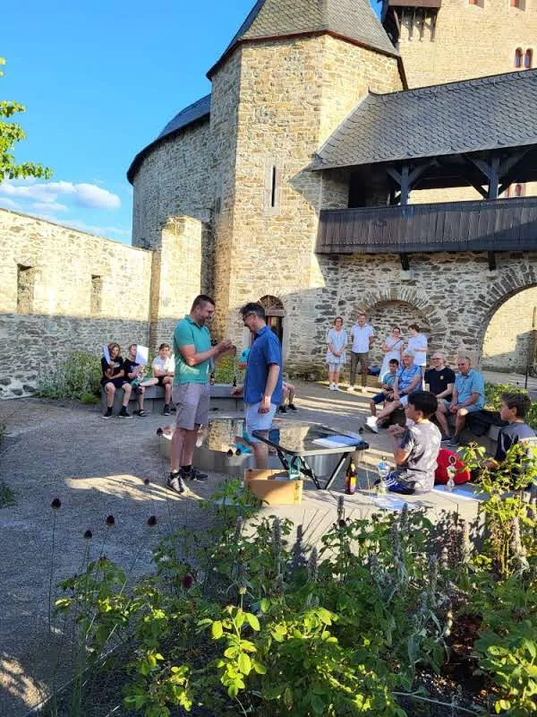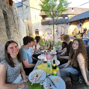 Pünktlich zu diesem Jubiläum konnten wir endlich wieder auf der Nordterrasse von Schloss Burg feiern, welche sich nach den Umbauarbeiten der letzten Jahre in neuem Glanz zeigte.